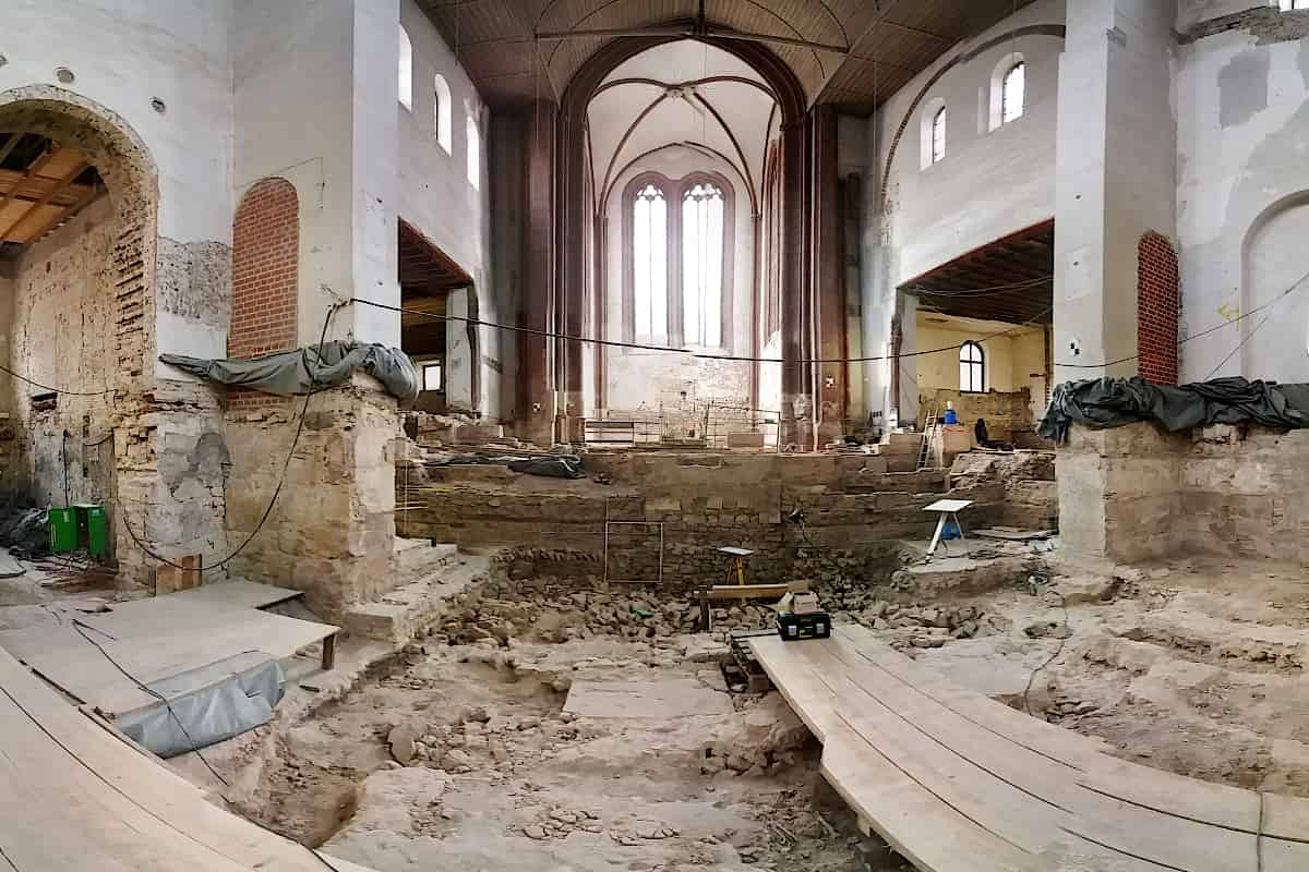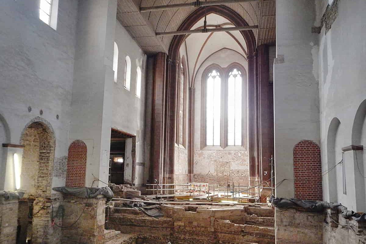 Zuerst wurde der Außenbau bearbeitet, seit 2012/2013 wird auch das Innere restauriert. 2013 führte die Erneuerung der Heizung zu ersten Entdeckungen von historisch bedeutsamen Funden, was zu archäologischen Grabungen im Kirchengebäude führte. Die Orgel-Empore aus den 1950er Jahren wurde entfernt, der Bereich im Kirchenschiff sowie in den angrenzenden Außenbereichen wurde auf eine Höhe von 3,0 – 6,0 m ausgehoben, was zu zahlreichen Bauzuständen und veränderten Randbedingungen für die historische Konstruktion führte.